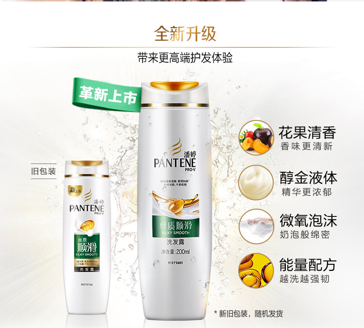 • 商品名称:【美妆一号商城】潘婷洗发水丝质顺滑去屑200ml秀发能量水持续修护